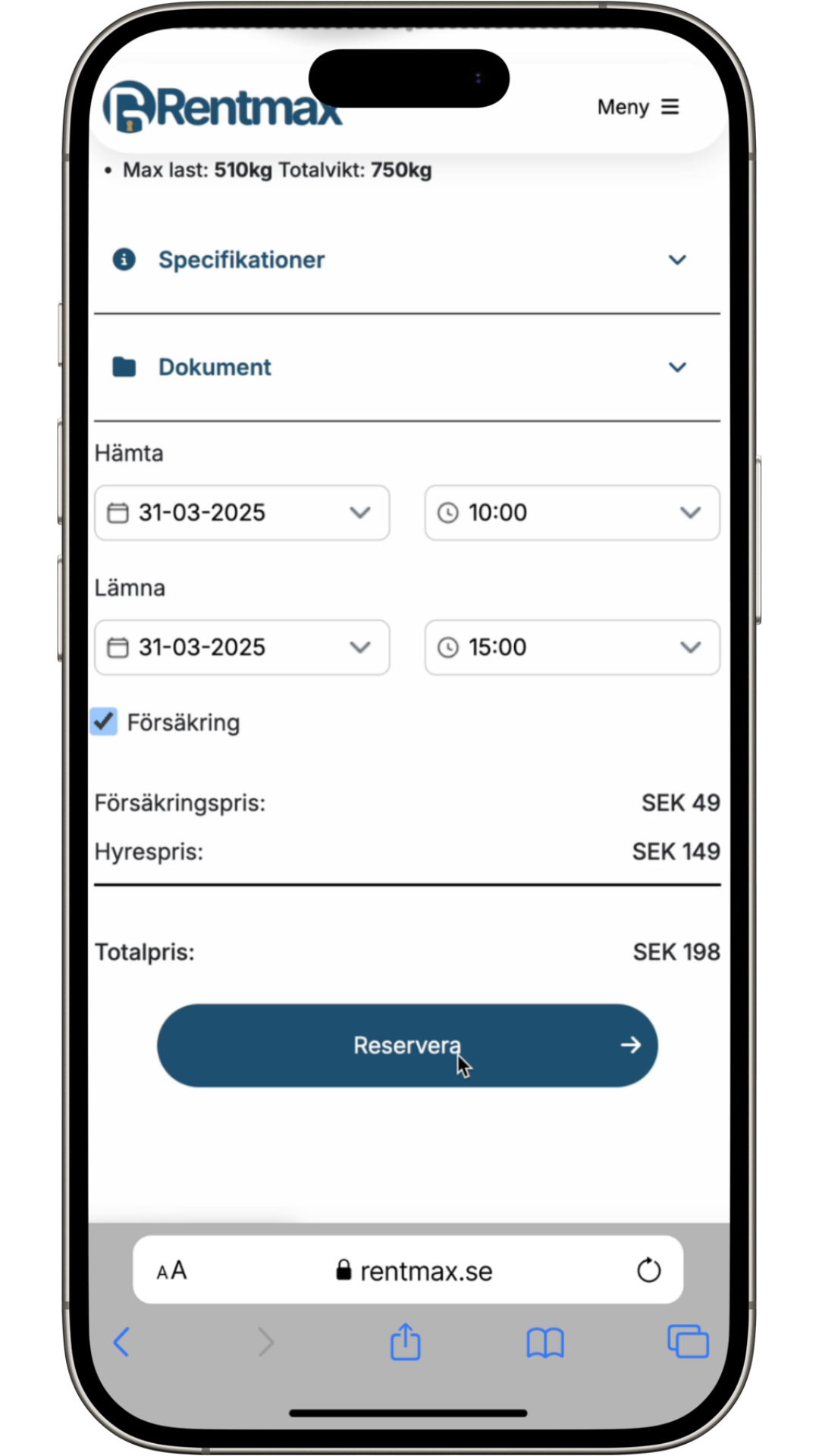 Du kan hämta släpet när som helst under dygnet, men du måste göra det inom 24 timmar från bokningens start, annars annulleras din bokning av säkerhetsskäl.