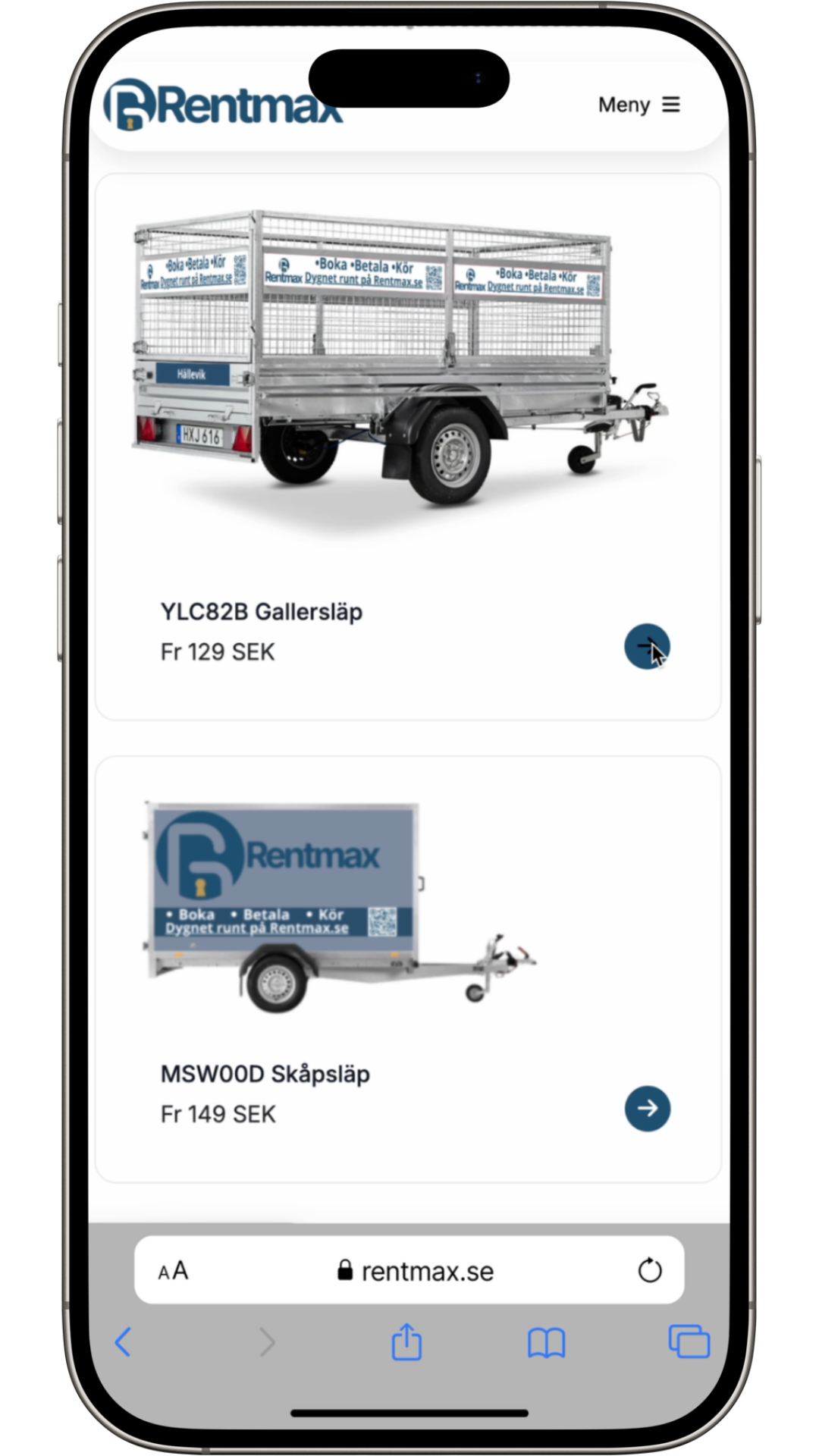 2. Hitta ditt släp och kontrollera registreringsnumret.